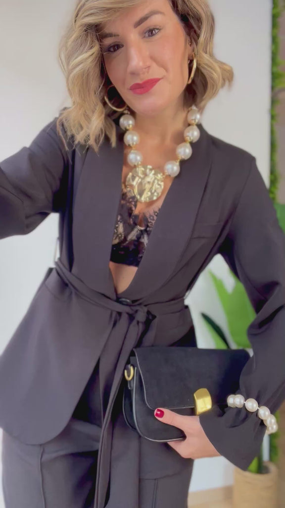 Blaser regolabile con cintura , panta con elastico in vita nella parte retro