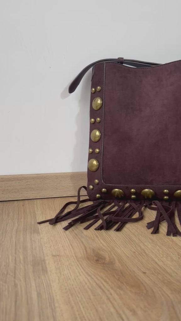 Tracolla con frange e borchie oro