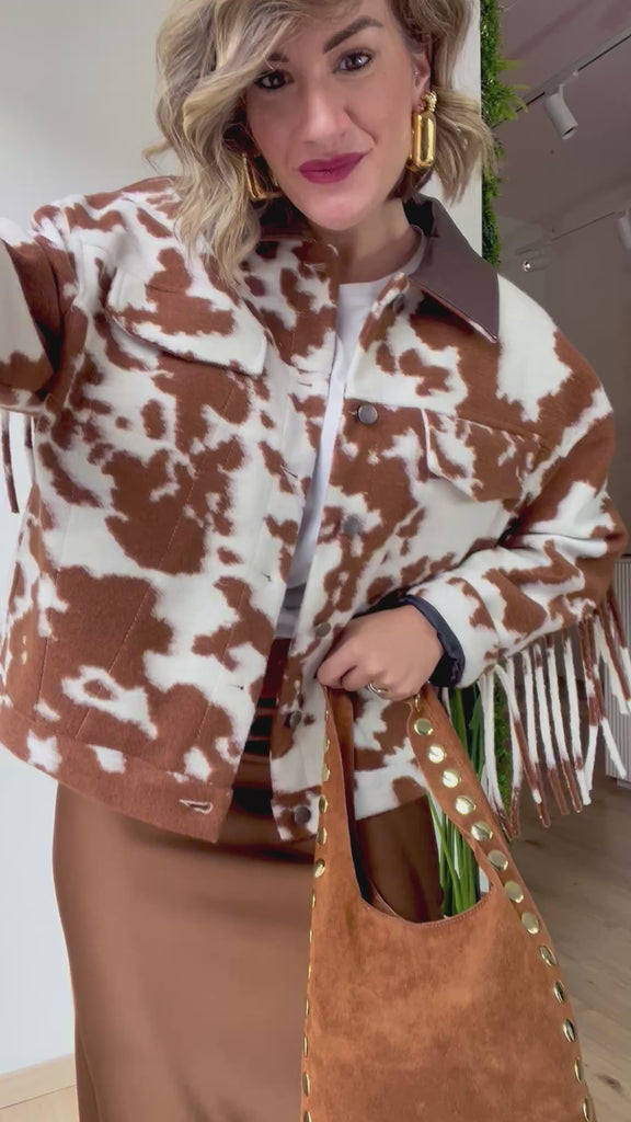 Giubbotto in panno con frange COW cammello